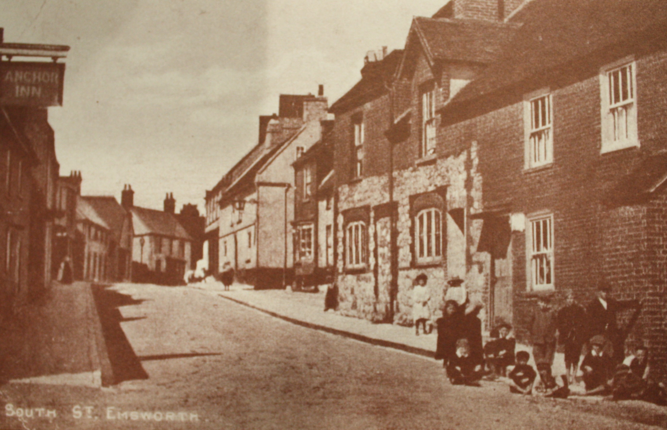 Reproduced from a Post Card dated 1900 for The Bookshop, Emsworth, Hampshire., “Postcard showing a view along South Street,” Emsworth Museum, accessed April 25, 2026, https://mail.emsworthmuseum.org.uk/emcms/items/show/9693.